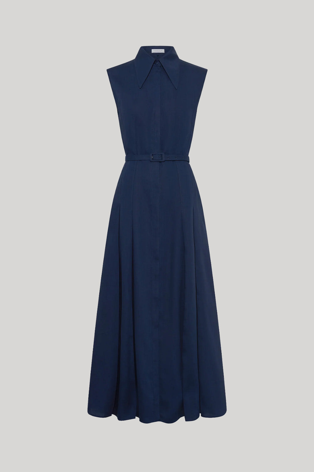 Gabriela Hearst | Durand Pleated Maxi Shirtdress in Electric Navy Aloe Linen