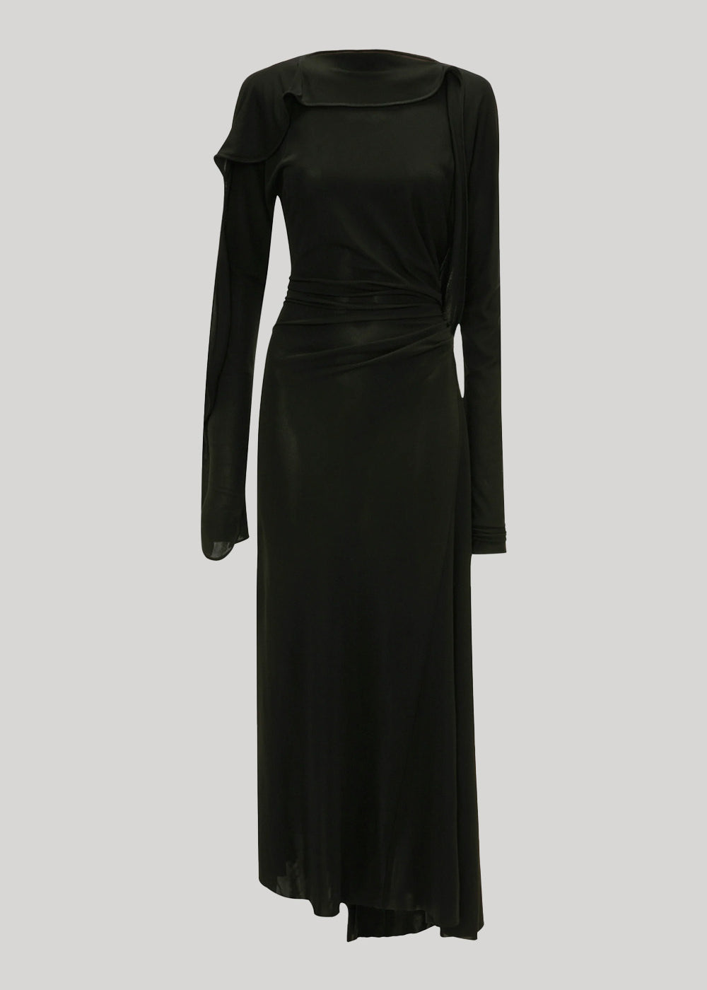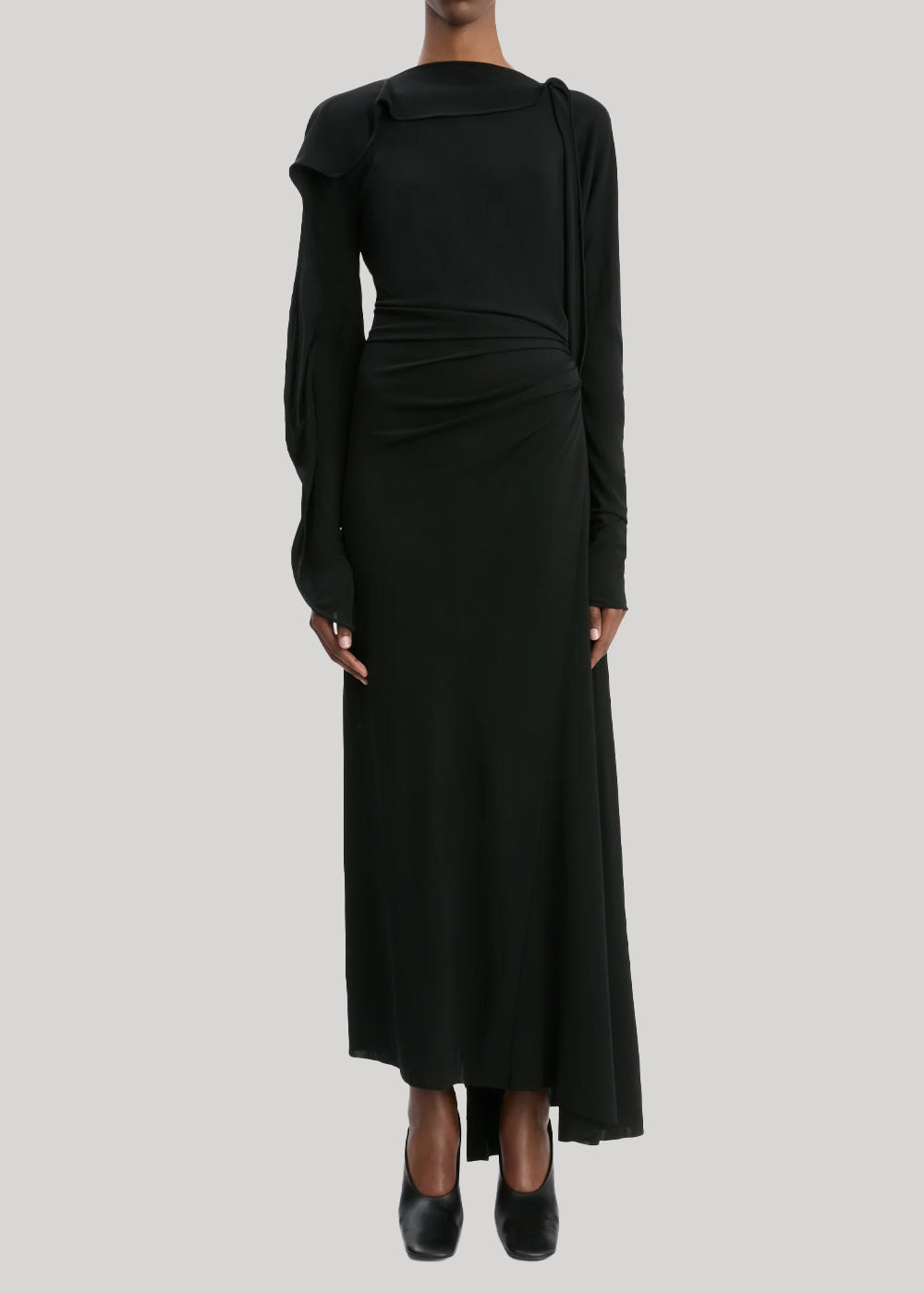 Victoria Beckham | Long Sleeve Draped Jersey Midi Dress