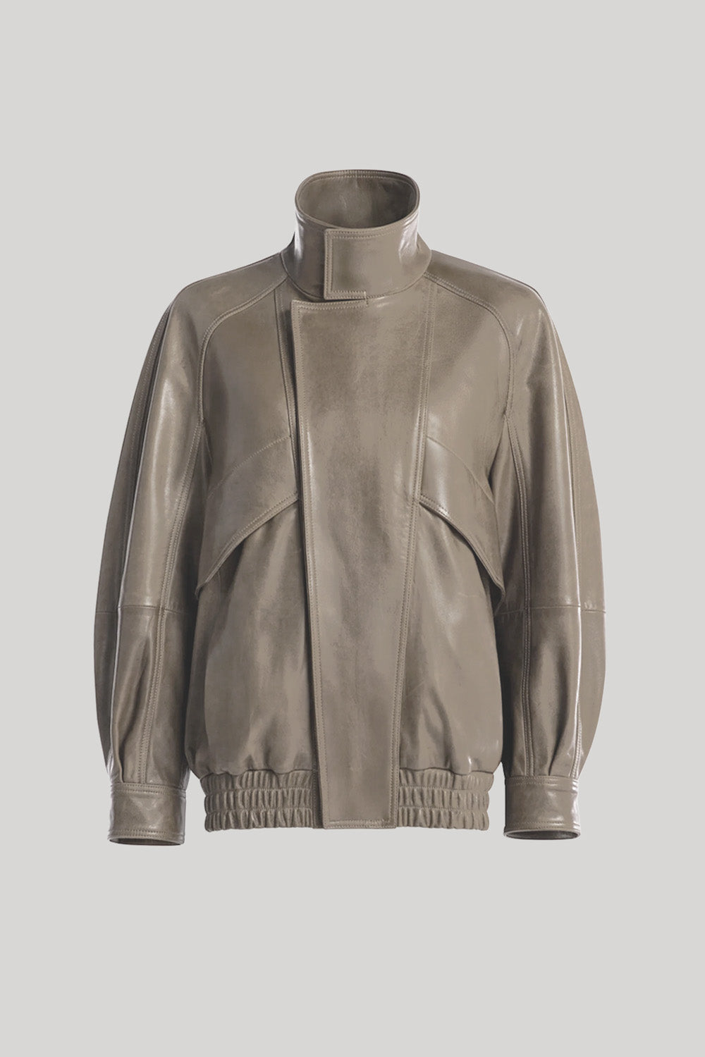 Nour Hammour | Ariste Fluid Leather Jacket in Argile