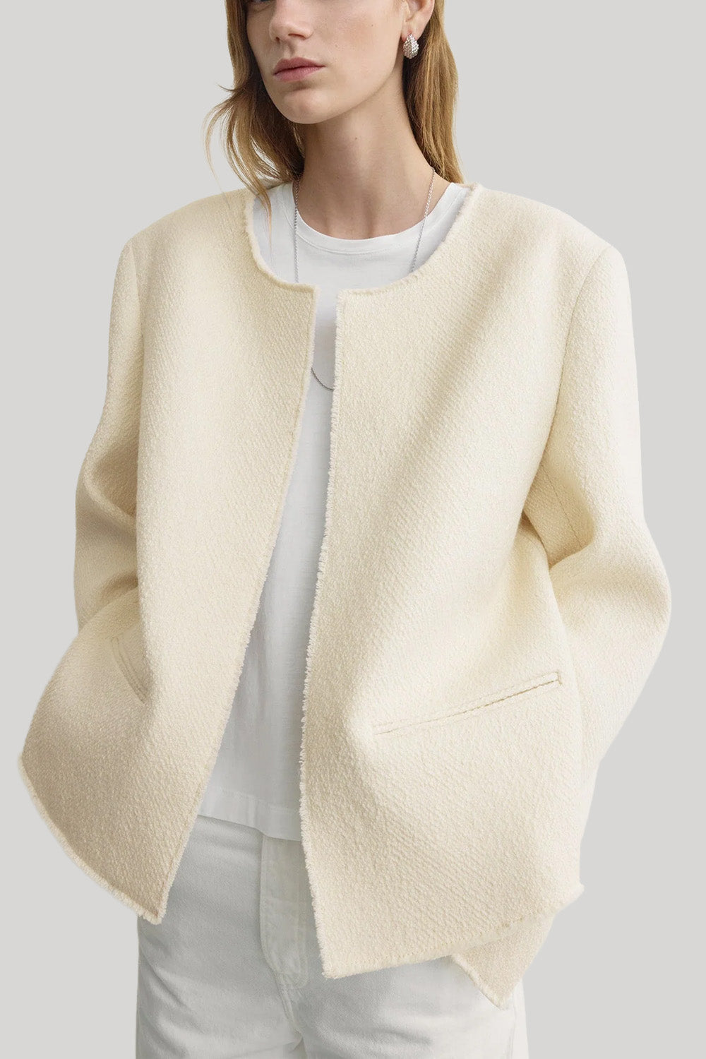 Toteme | Open-Front Bouclé Blazer in Ecru