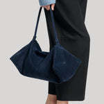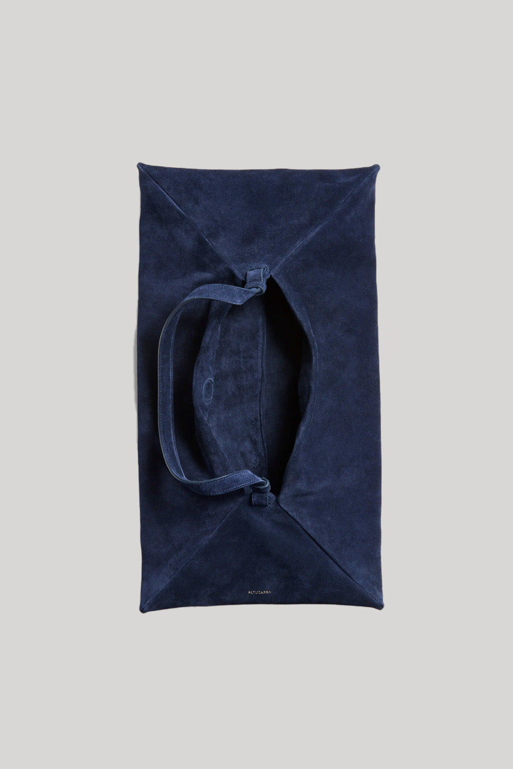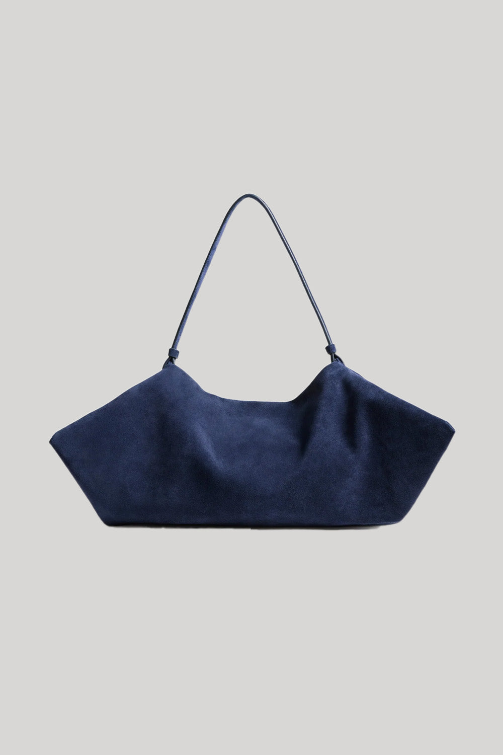 The Origami Bag is inspired by the ancient paper folding art. It's shaped in Spain from a single, rectangular piece of suede which folds down completely flat.