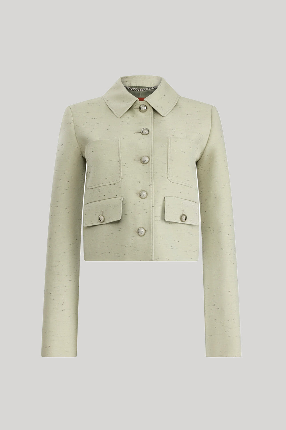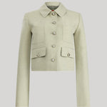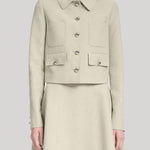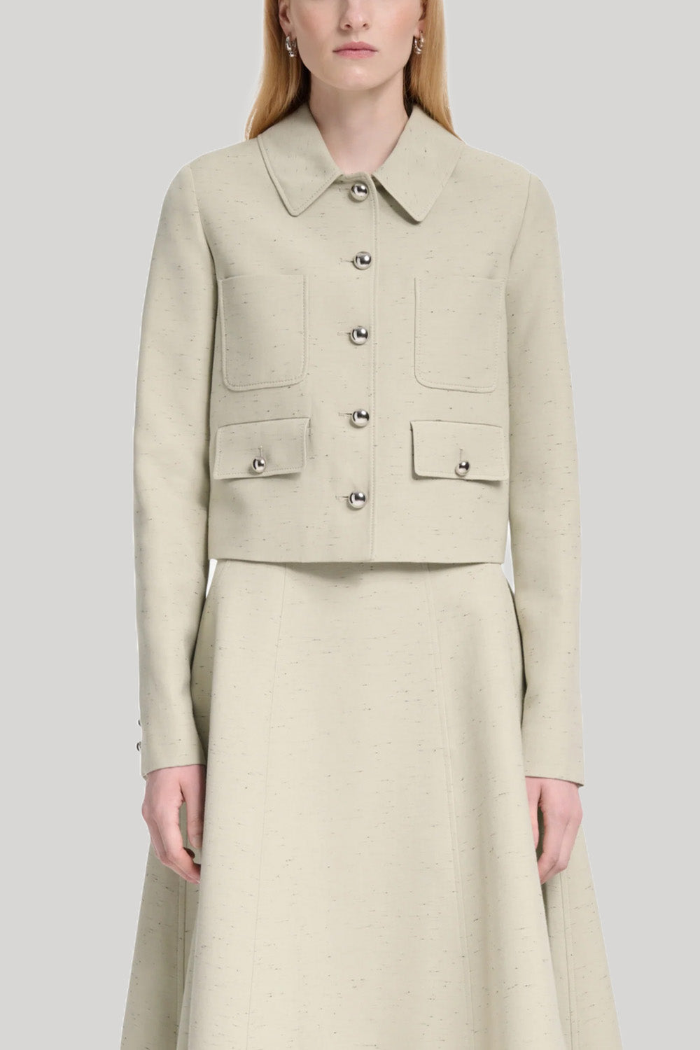 The Astley jacket is precision tailored to a cropped, boxy silhouette. It's detailed with metal buttons inspired by vintage jewelry.