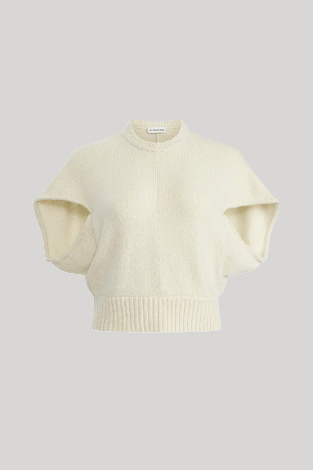 The Banks top perfectly captures the off-kilter aesthetic of Altuzarra's SS26 collection. It's knitted from an extrafine merino blend to a cropped silhouette with voluminous capped sleeves and ribbed trims.