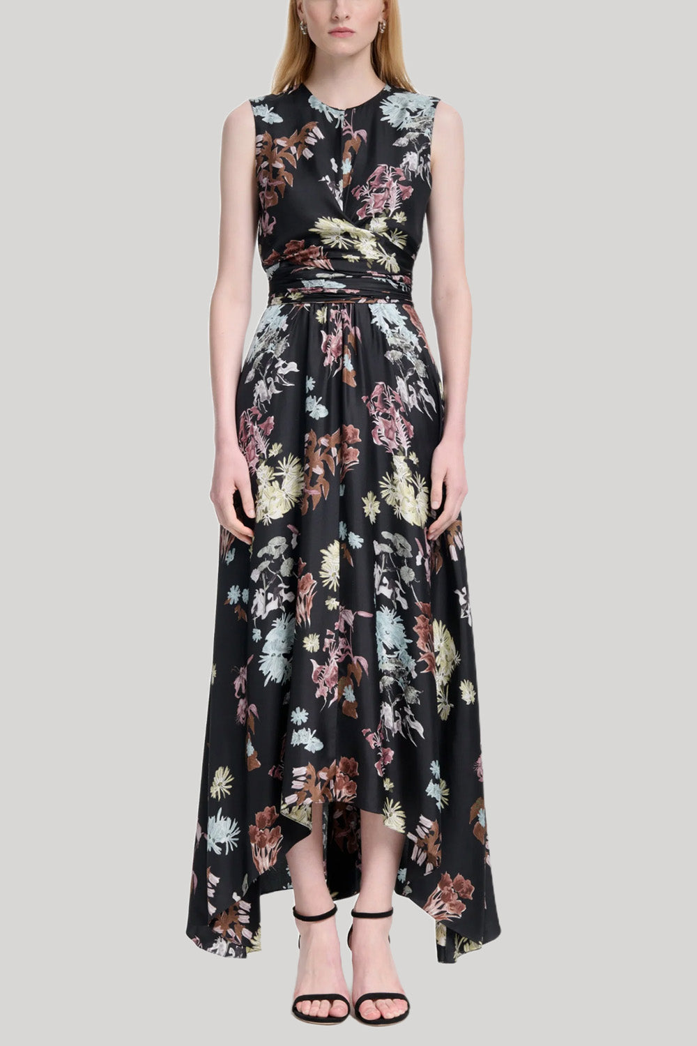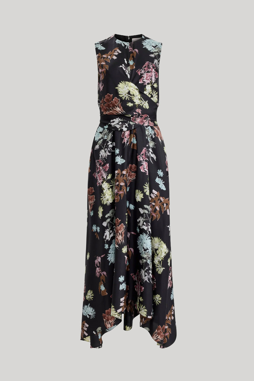The Penny dress is a stunning choice for upcoming weddings or events. It's made from fluid silk to a wrap-around silhouette to draw in the waist. It's printed with vibrant, abstract florals and falls to a floaty hem.