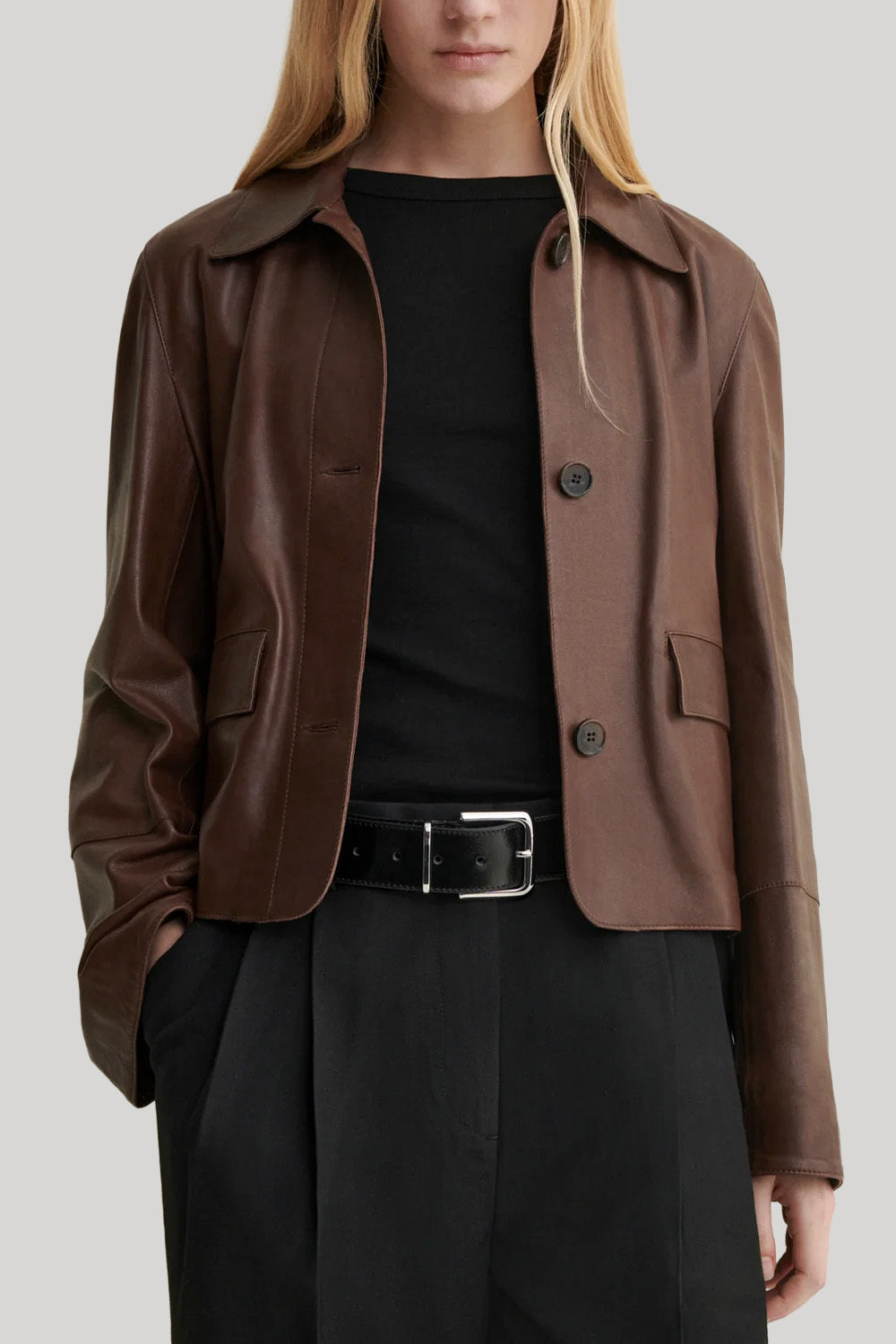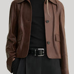 The FEM | Vintage Leather Jacket is designed with a sleek, tailored silhouette, featuring a three-button closure and front pockets for a practical yet stylish touch. Its clean lines and classic collar create a timeless, elegant look that complements any outfit. Made from 100% lamb leather, this jacket combines luxury and versatility in a design that never goes out of style.