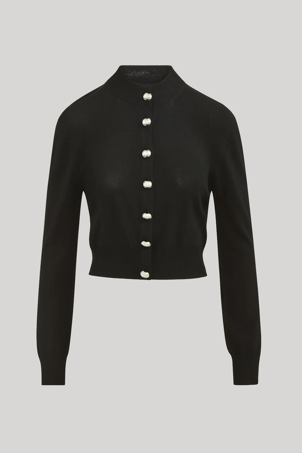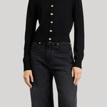 A refined update to a signature silhouette, this cardigan is knit from a smooth 12-gauge viscose blend that offers softness and structure. Designed with a shrunken fit, it features a polished crew neckline and a clean, versatile shape that layers effortlessly. Finished with this season’s signature seashell buttons, it’s a timeless wardrobe essential that transitions seamlessly from day to night.