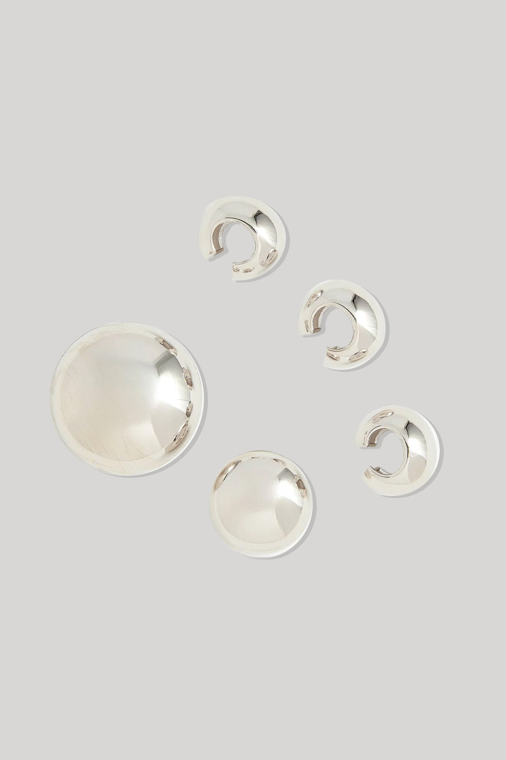 Inspired by the rounded elegance of our signature macaron buttons, the Nova Clusters are a five-piece set featuring three sculptural ear cuffs and two asymmetrical studs. Designed for endless versatility, they can be worn solo for subtle polish, mixed and matched for playful asymmetry, or styled together in a bold stack. Timeless accents that complete any look.