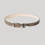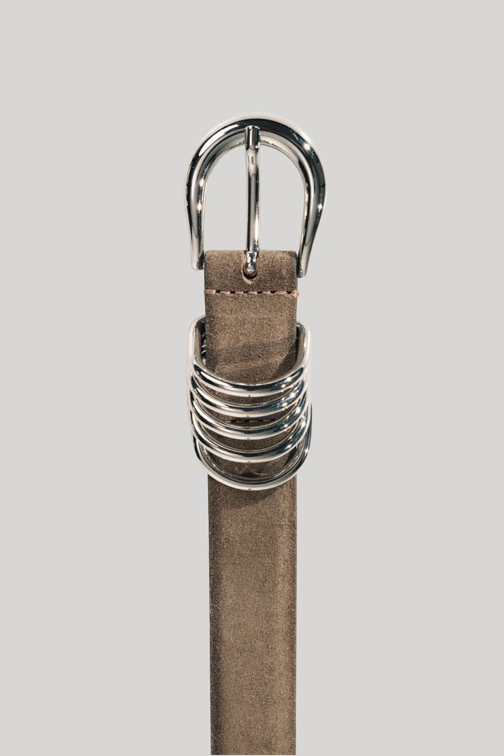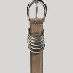 Déhanche's signature style featuring 5 rings adornments with 10 holes and an extended strap length to accommodate a broader range of sizes. Meticulously crafted from Italian suede and silver hardware.