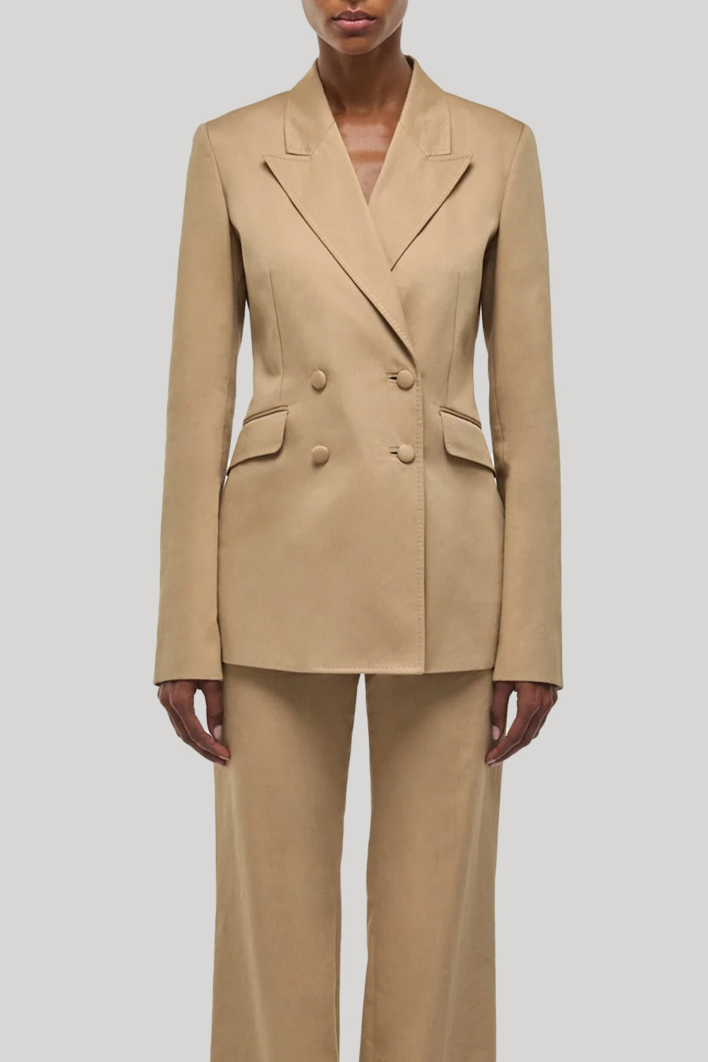 The Angela Double Breasted Blazer is a staple Gabriela Hearst style. The Angela is constructed internally with traditional menswear details. Featuring a subtly curve wide lapel and traditional tailoring pick-stitch gives it an overall iconic look and elegant finish.