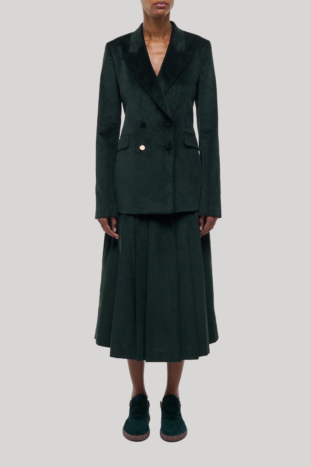 The Angela Double Breasted Blazer is a staple Gabriela Hearst style. The Angela is constructed internally with traditional menswear details. Featuring a subtly curved wide lapel and traditional tailoring pick-stitch give it an overall iconic look and elegant finish.
