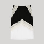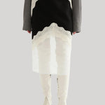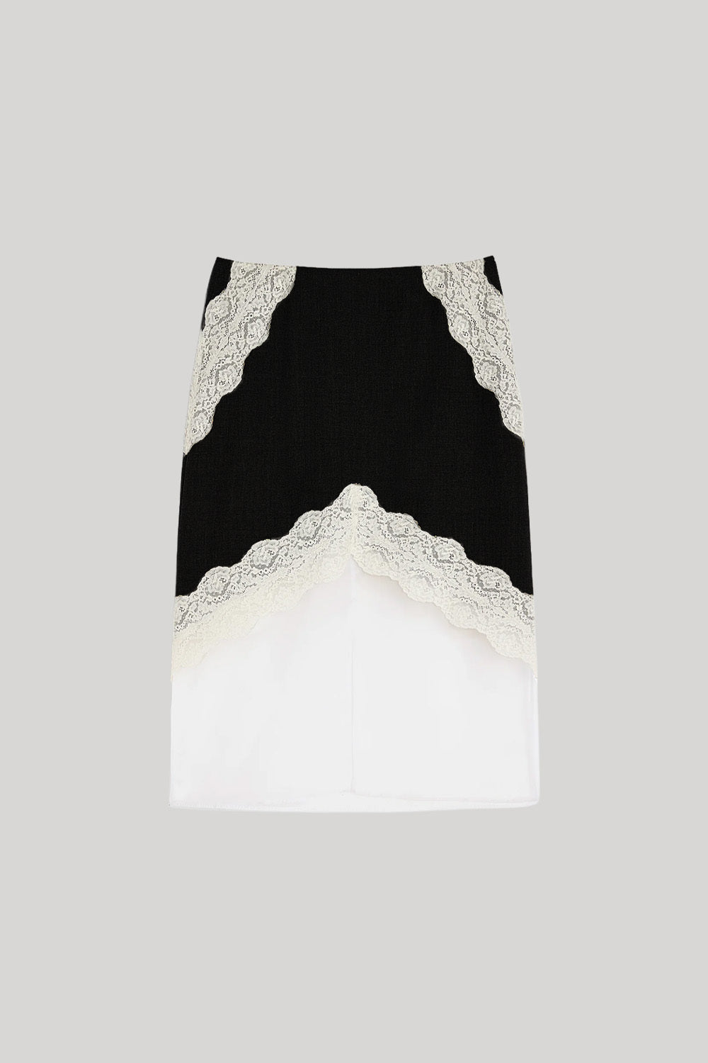 Knee-length wool canvas skirt with organza bottom and lace embroidery