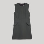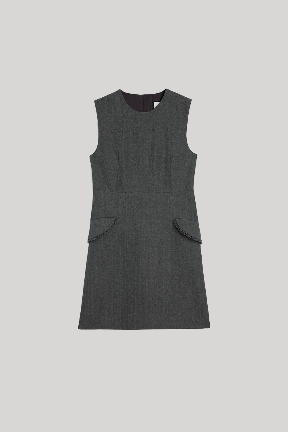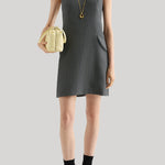 Sleeveless fluid silk and viscose tailored dress with side pockets with lace trim