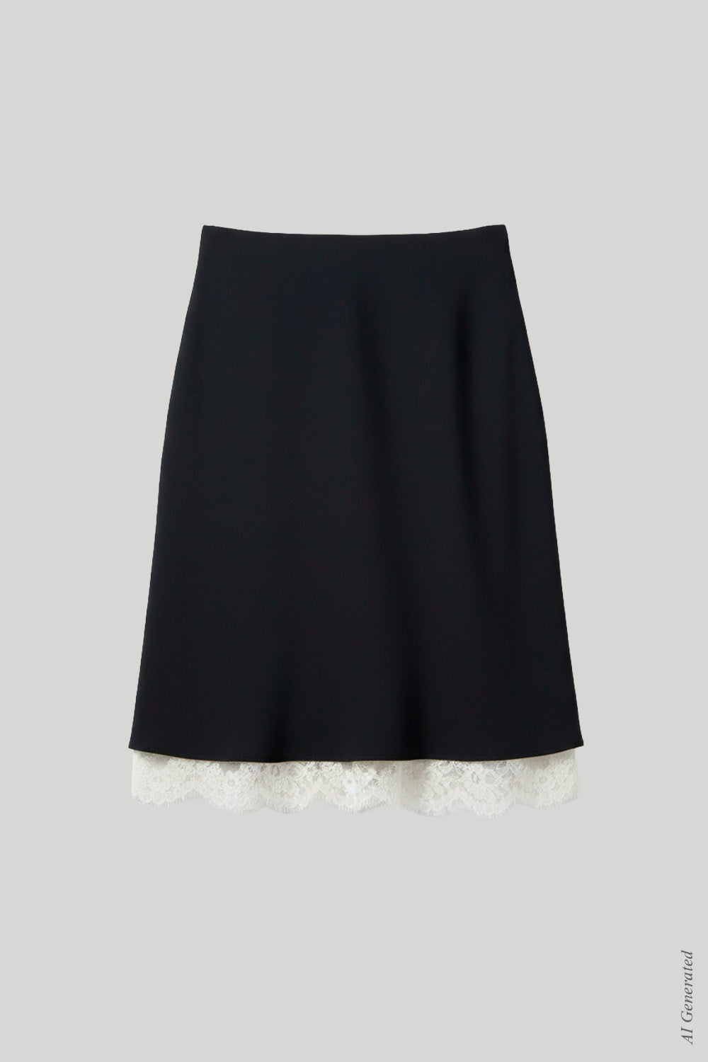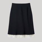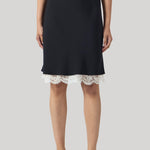 A bias-cut pull-on skirt with a slim, true-to-size fit. Designed with an inside logo elastic waistband for a smooth finish. Features a cotton voile underlay with lace hem that subtly peeks out at the hem for a layered look. Pair with a relaxed knit for a casual look, or any blazer for an elevated day to night option.