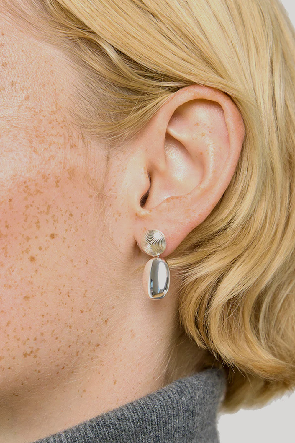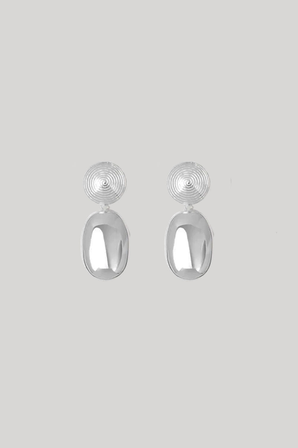 The Carla Earrings combine two contrasting elements – a delicate spiral stud and a bold oval drop – for a playful yet polished finish. Lightweight and crafted from 925 sterling silver with a strong silhouette, they transition seamlessly from day to night.