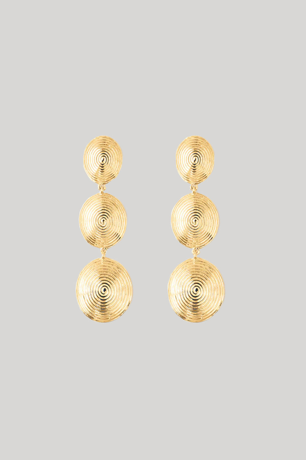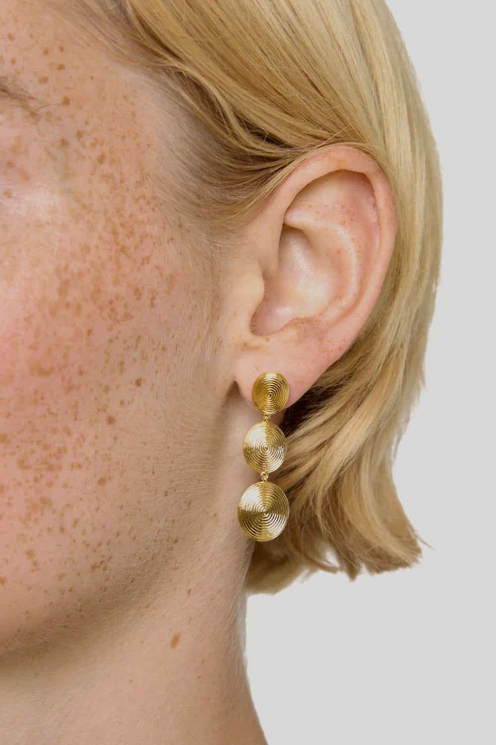Bold and sculptural, the Ruby Earrings stack three spiral discs into a cascading silhouette that catches the eye. Designed to stand out, they offer drama without heaviness – a modern take on statement dressing.