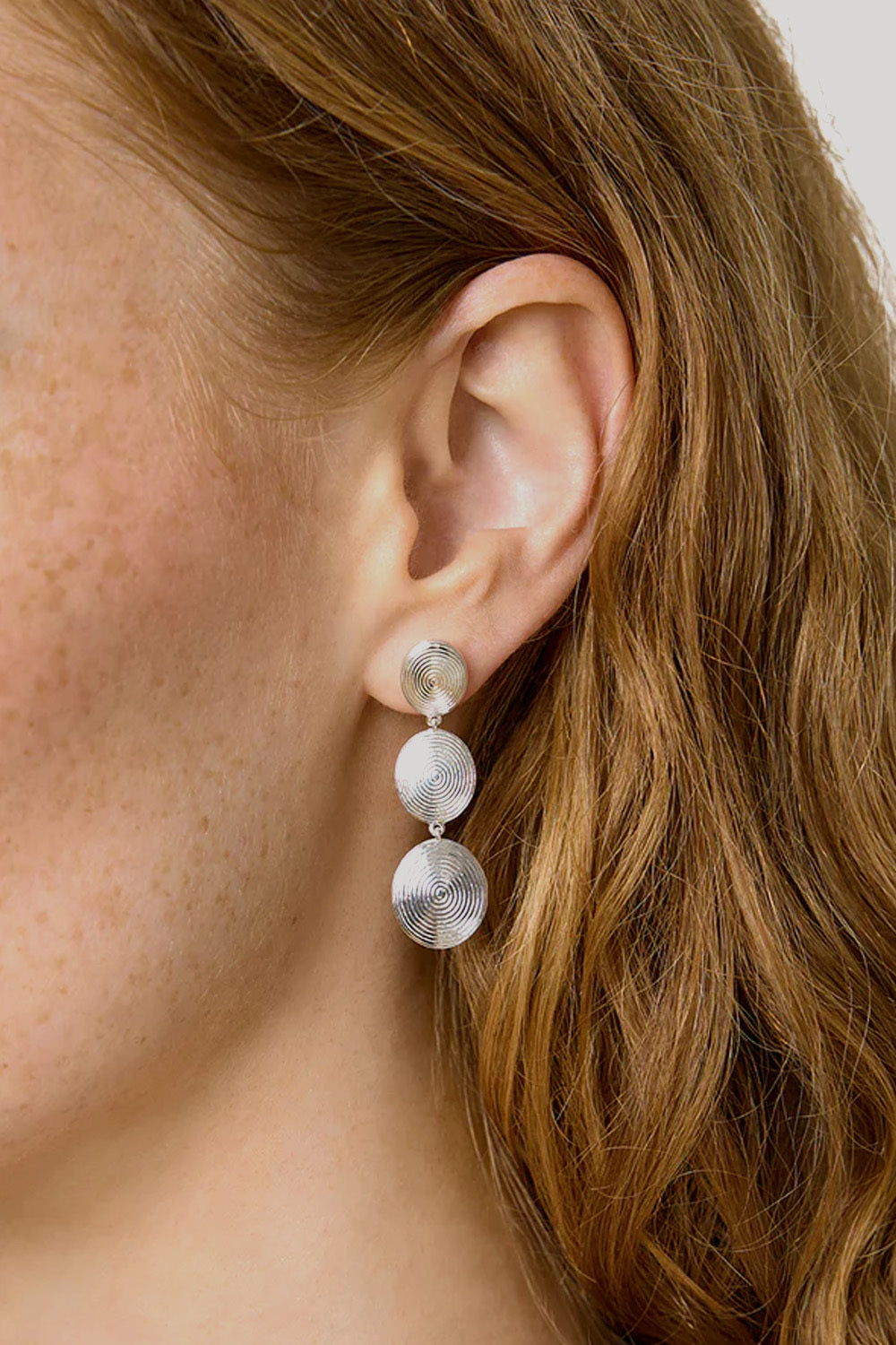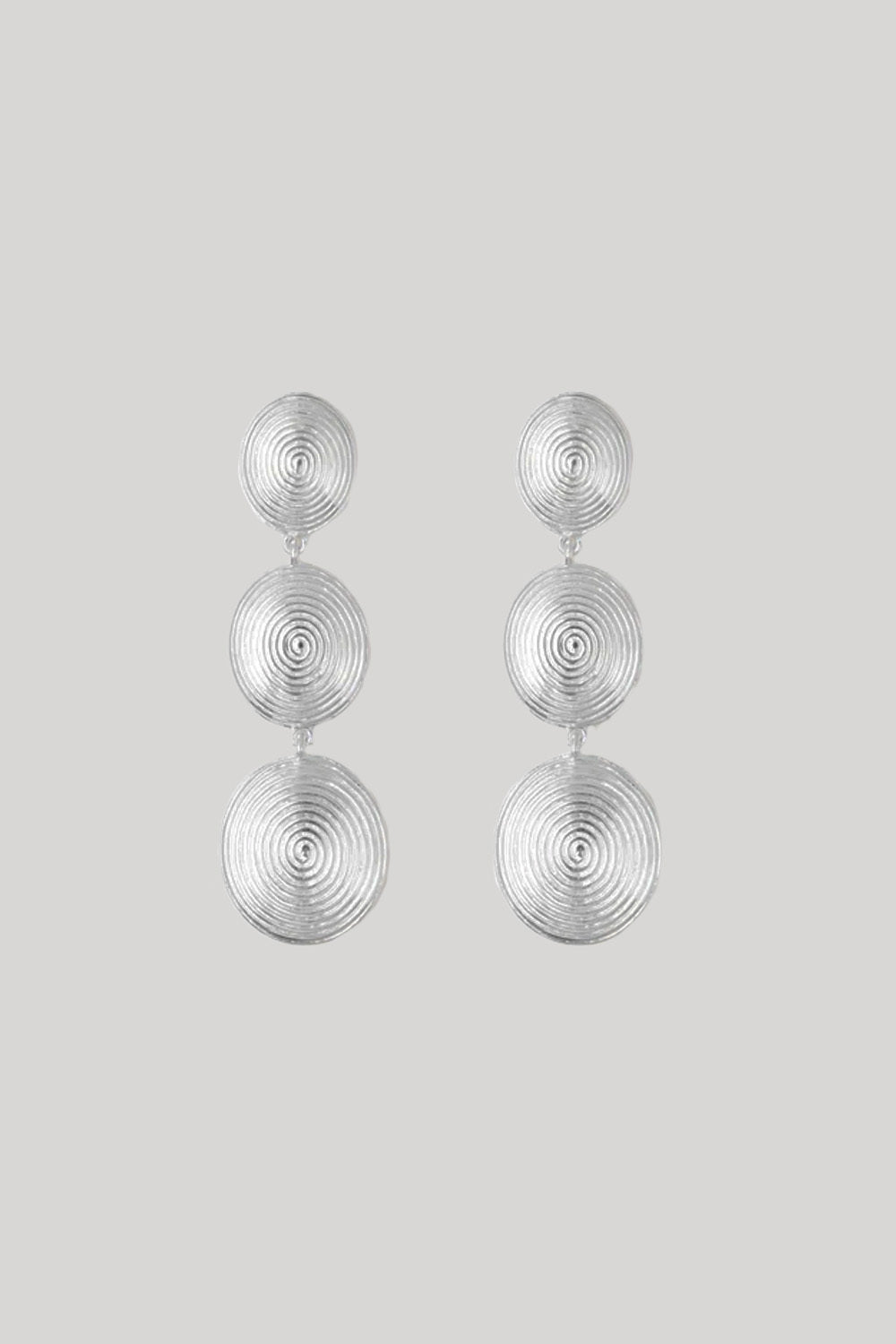 Bold and sculptural, the Ruby Earrings stack three spiral discs into a cascading silhouette that catches the eye. Designed to stand out, they offer drama without heaviness – a modern take on statement dressing.