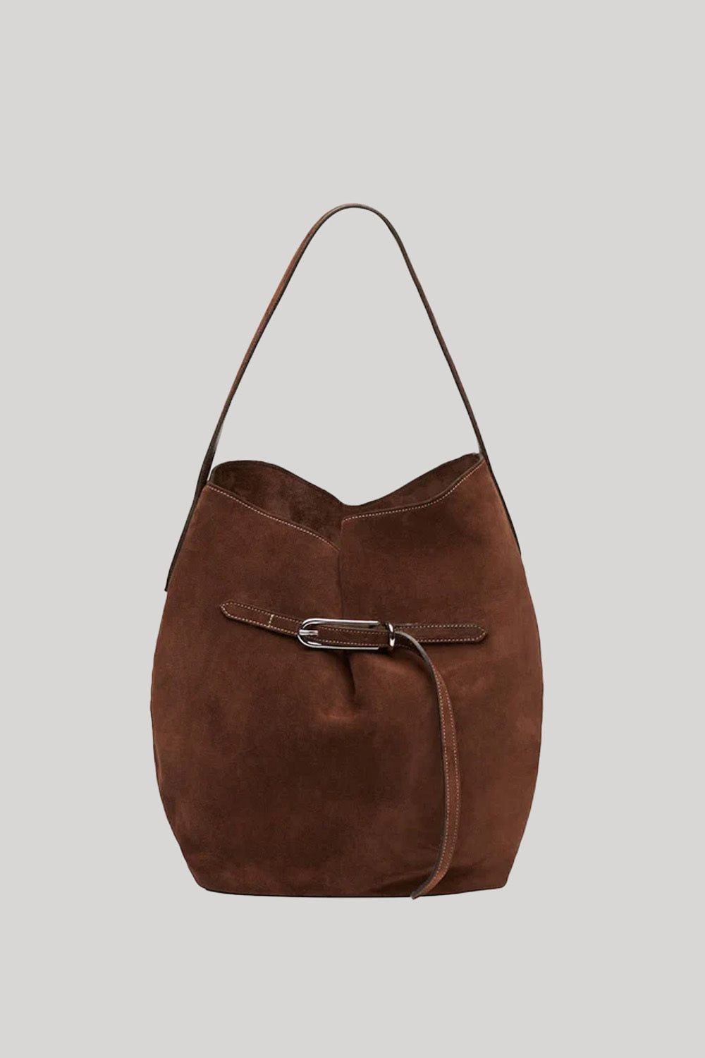 Timeless aesthetic seamlessly merges with modern practicality in the Belted Bucket Bag. Its curved shape, inspired by organic silhouettes found in nature, is cinched with a slender buckle. Perfectly sized to fit a 13” laptop, among other essentials, it’s the ideal pick for workdays in the city.