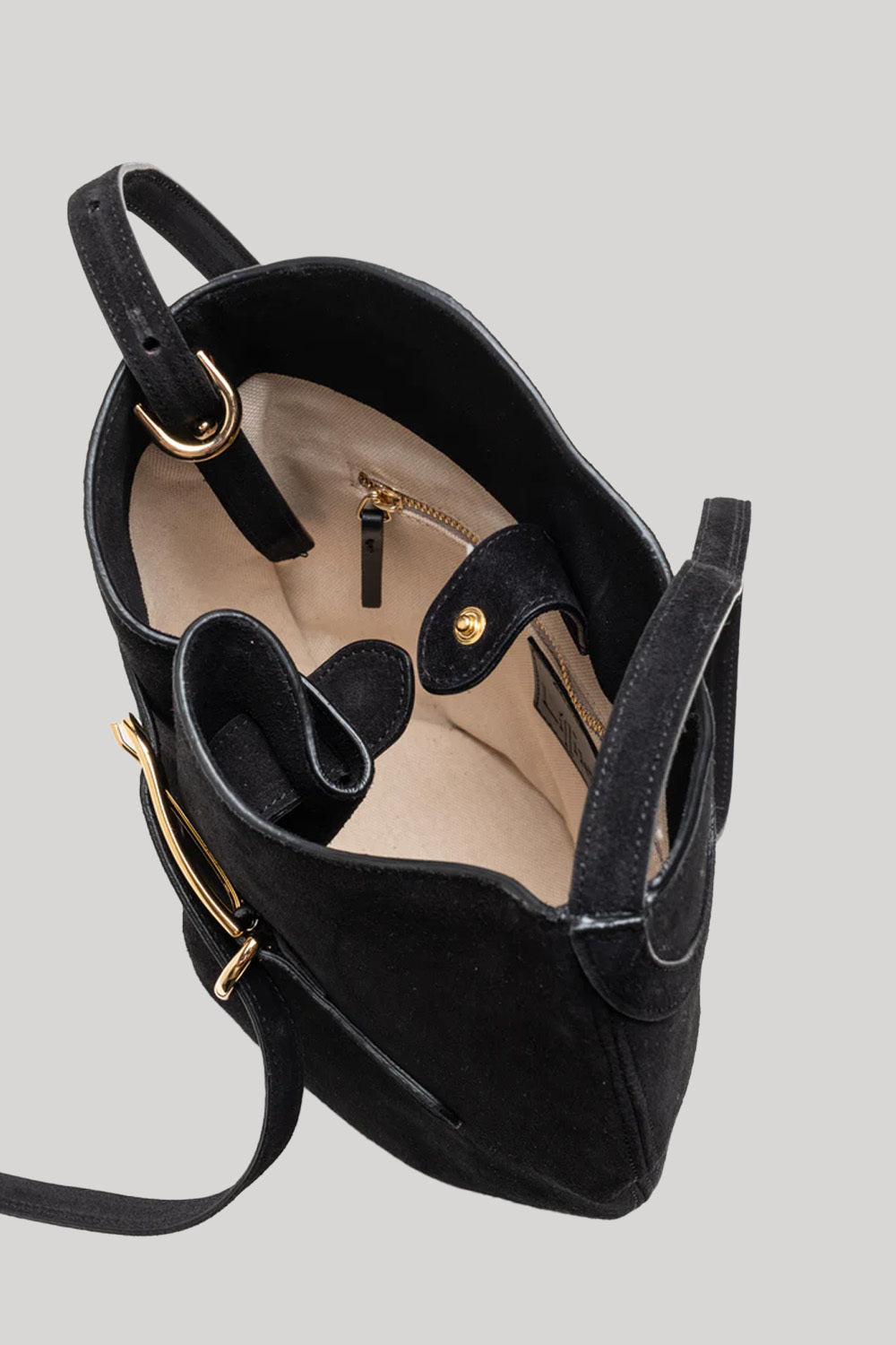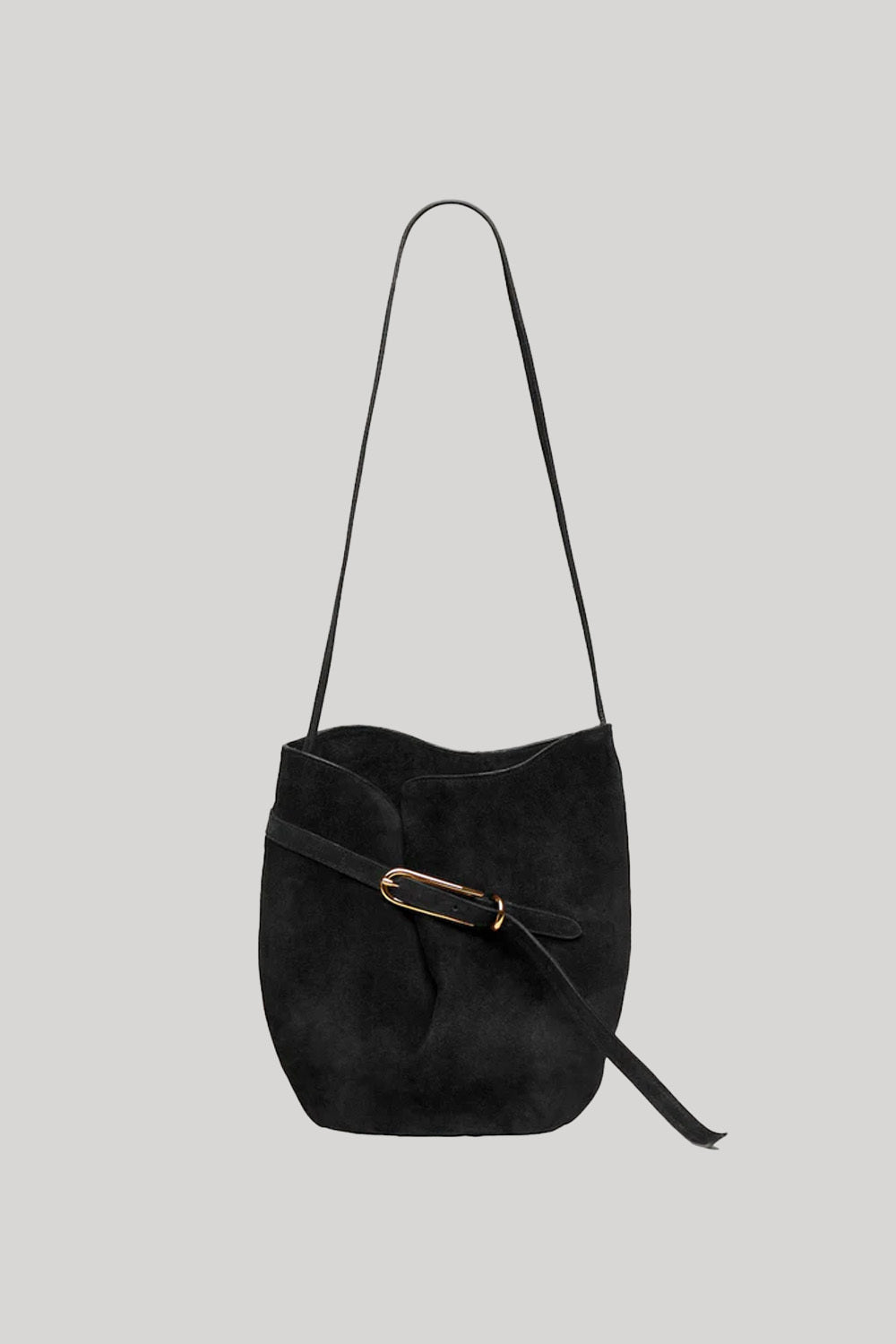 The silhouette of the Belted Bucket Bag echoes seashells, driftwood and other organic shapes found in nature, adding an artful finish to every look. It can be worn on the shoulder or crossbody and is cinched with a slender diagonal buckle that creates soft feminine curves when fastened. In a medium size, it’s equally chic on weekdays and weekends.