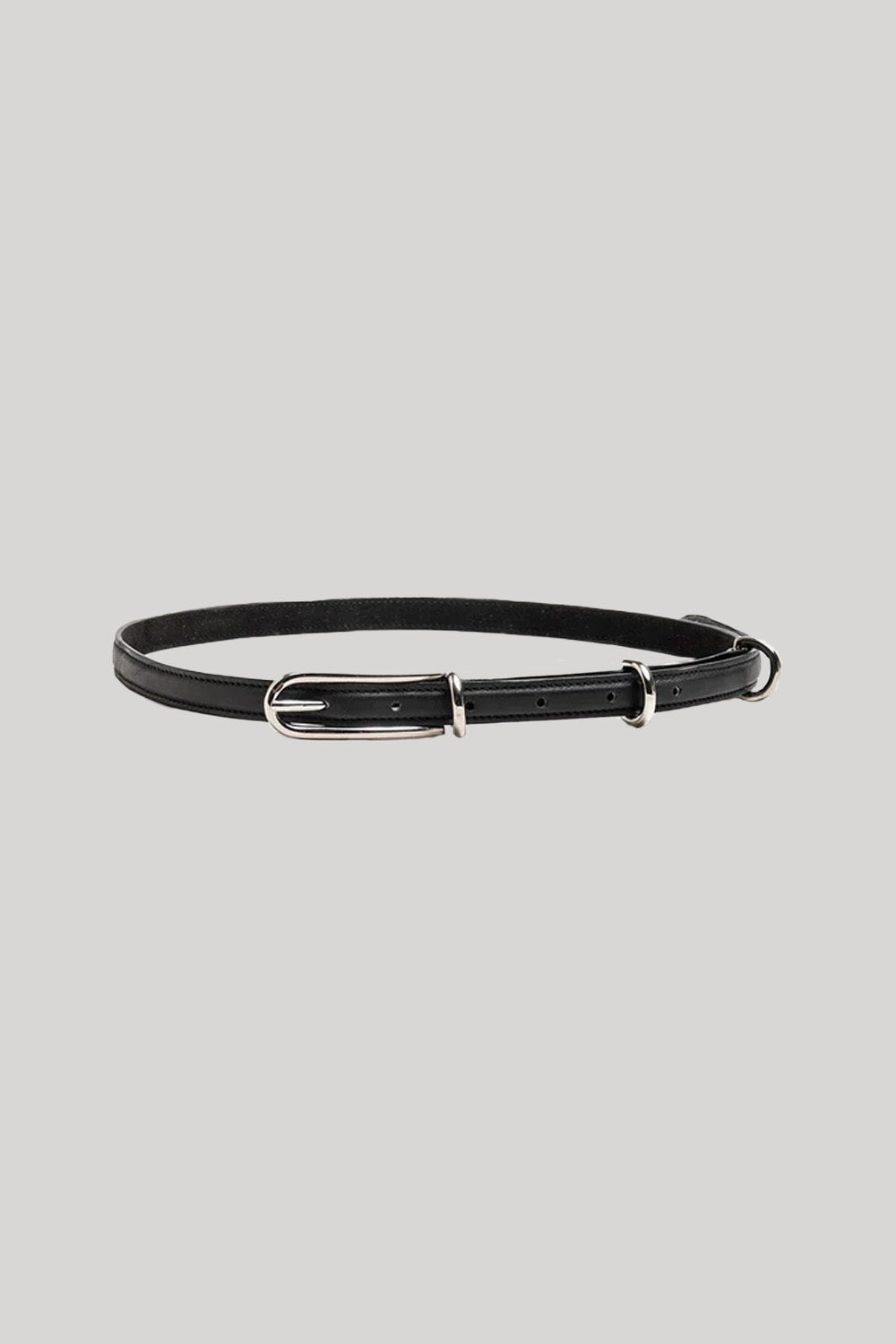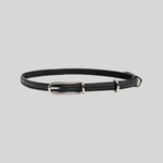 Made from smooth black leather, the Three Keepers Belt is designed with the same silver-tone slender buckle as our Belted Bucket Bags. It features extra hardware in the form of three evenly spaced sleek metallic loops. Cinch it over a blazer or a dress.