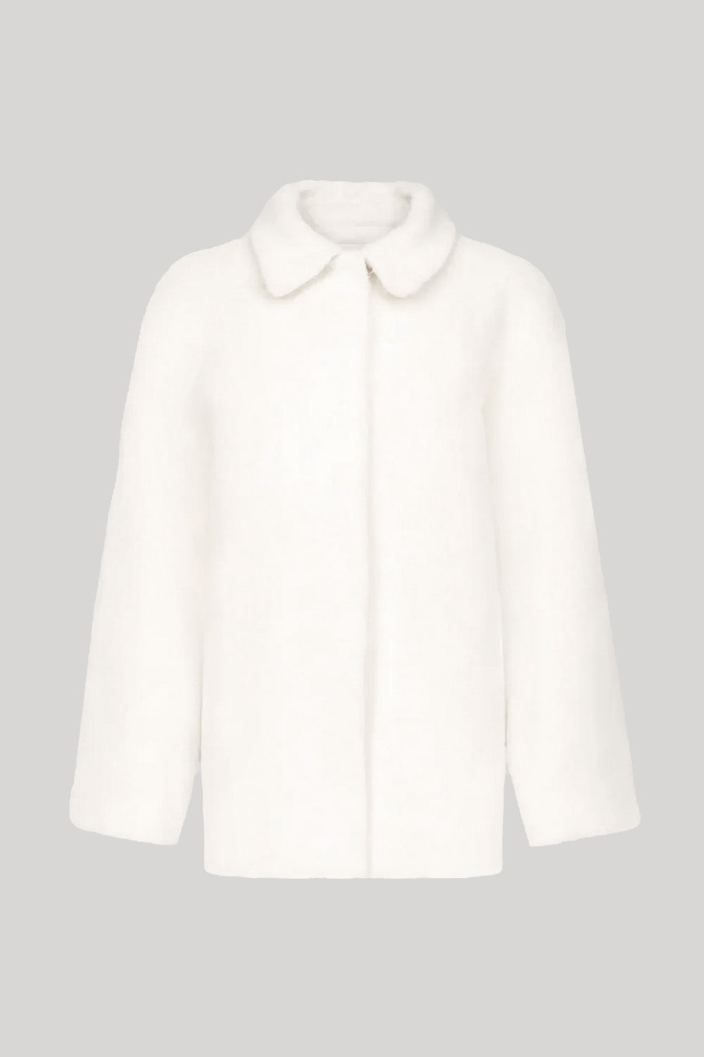 This coat is made of an alpaca and wool blend. It features a straight fit and minimal details, including a hidden button placket and a spread collar, creating a graphic, pure silhouette to complement any outfit.