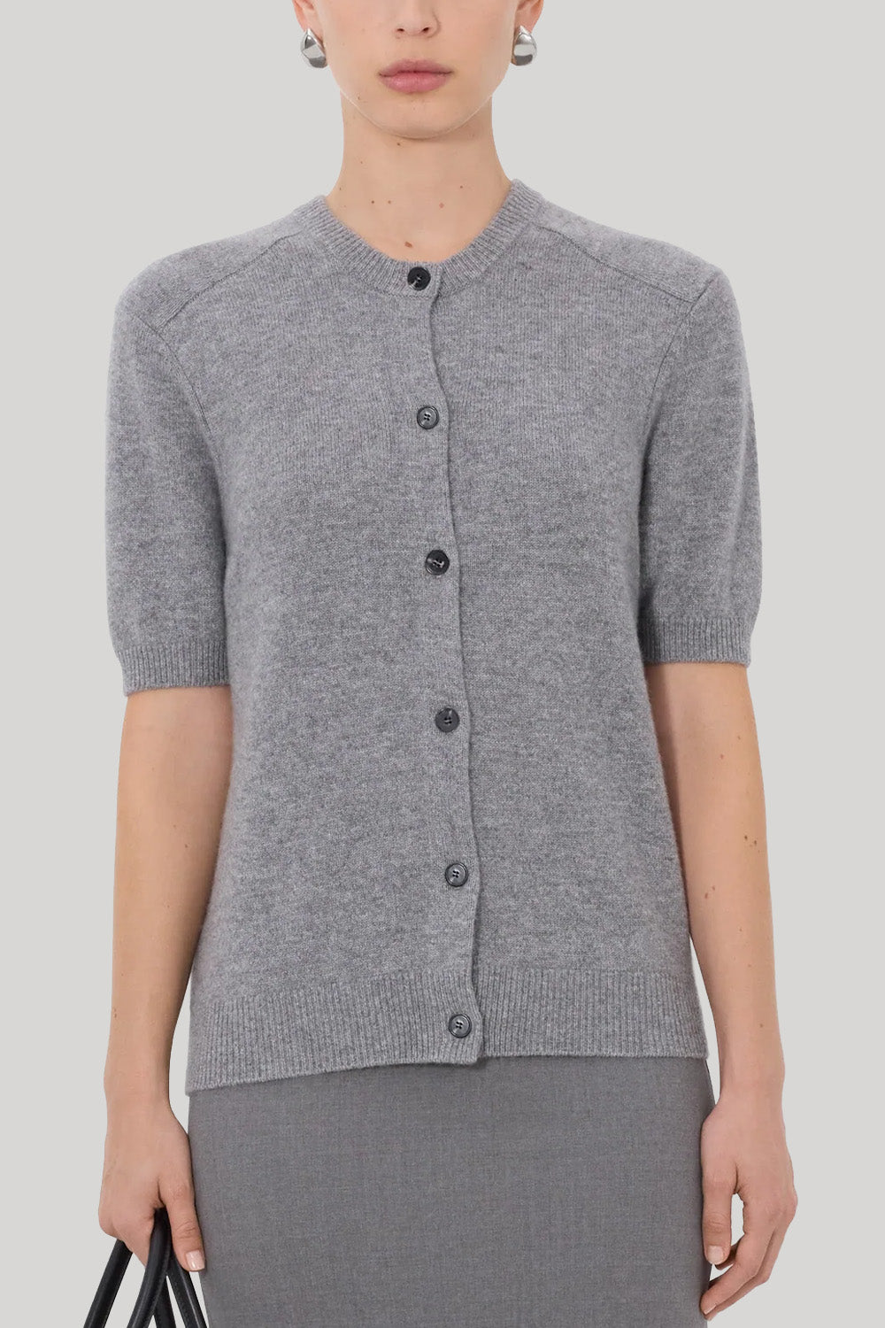 This cardigan is made of pure cashmere. Its straight fit is complete with short sleeves, a buttoned front opening and a crew neck. Details include ribbing on the collar, hem and cuffs.