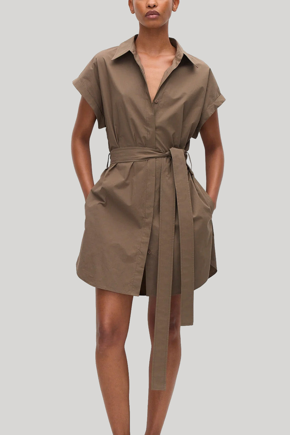 An everyday mini dress reminiscent of our Relaxed Sleeveless Shirt. Features a removable self belt with loops at the side waist, or wear it with our Classic Belt. Made from our organic cotton poplin with a washer finish, this mini shirt dress has a concealed button placket with bartack detailing and inseam pockets at the hip.