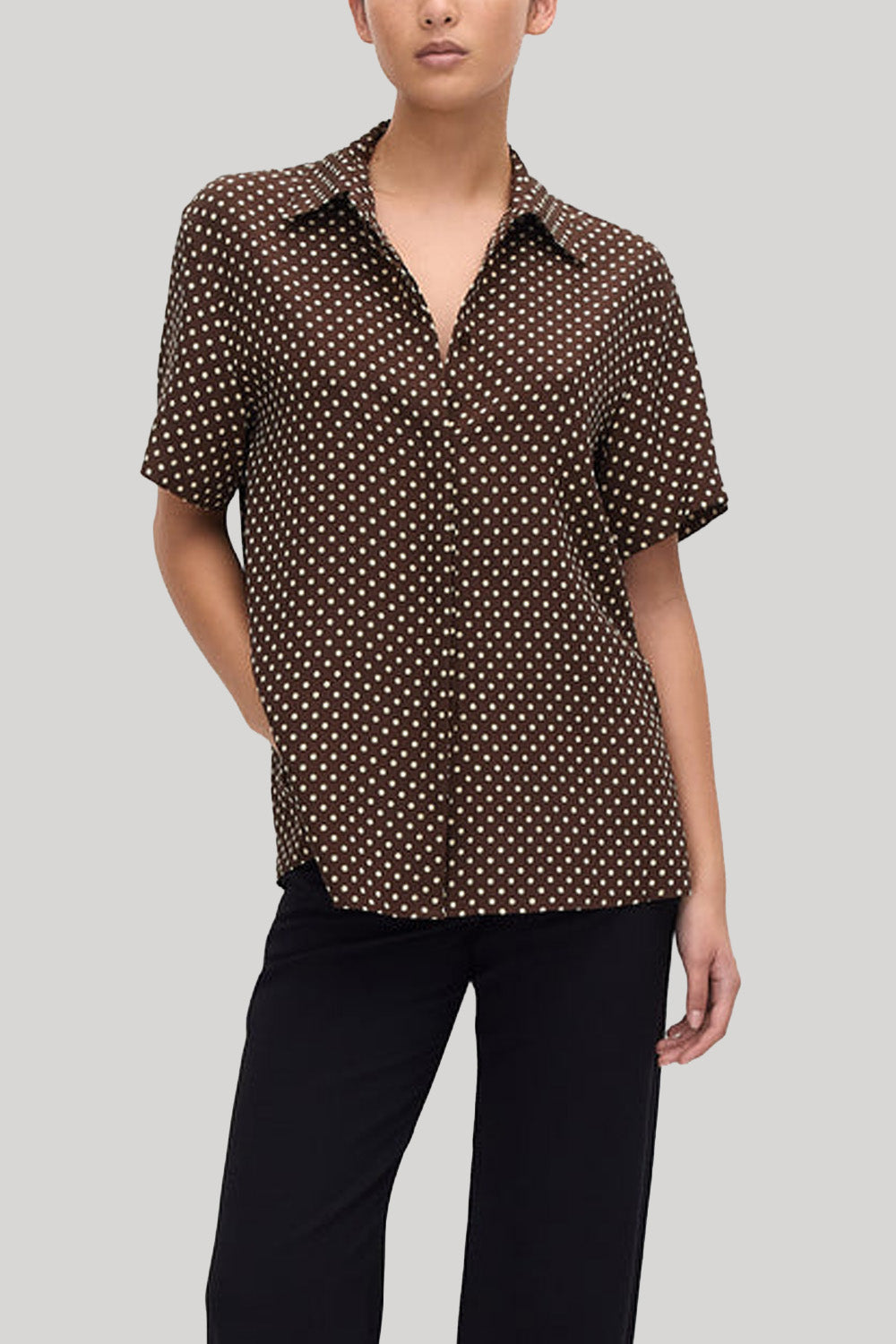 Easy without compromise, this oversized short sleeve shirt was inspired by a vintage men's style. Made from our silk crepe de chine, it has an exposed button placket and side splits. Style as a set with the matching Drawstring Trouser, or wear tucked into our Relaxed Crepe Pant for an elevated evening look.