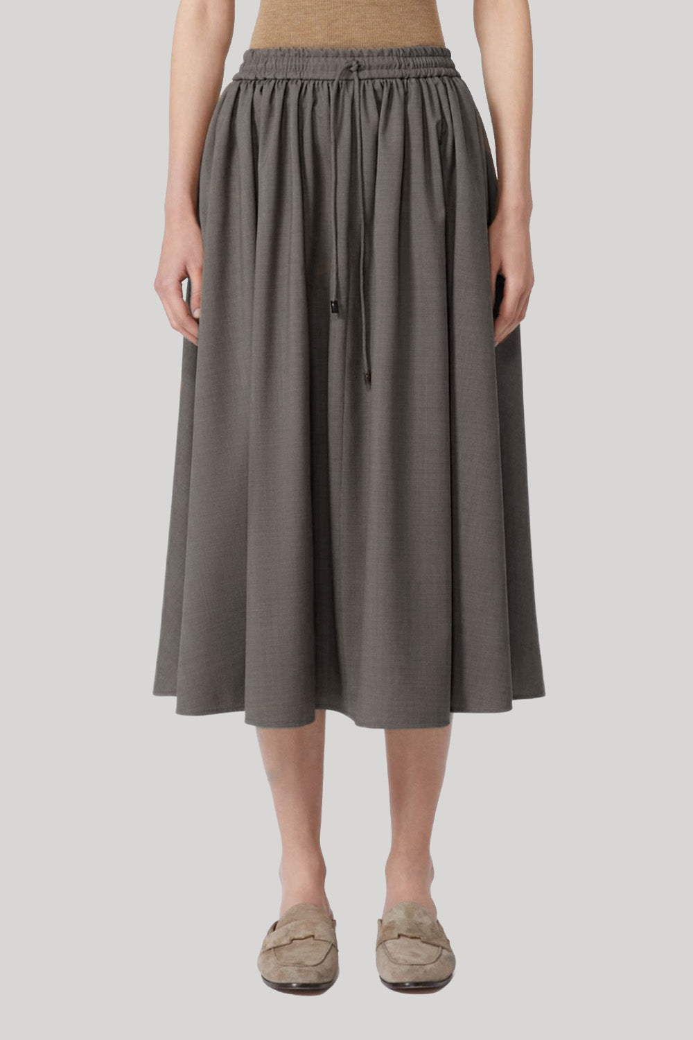 Midi skirt with a drawstring-adjustable elasticated waist.