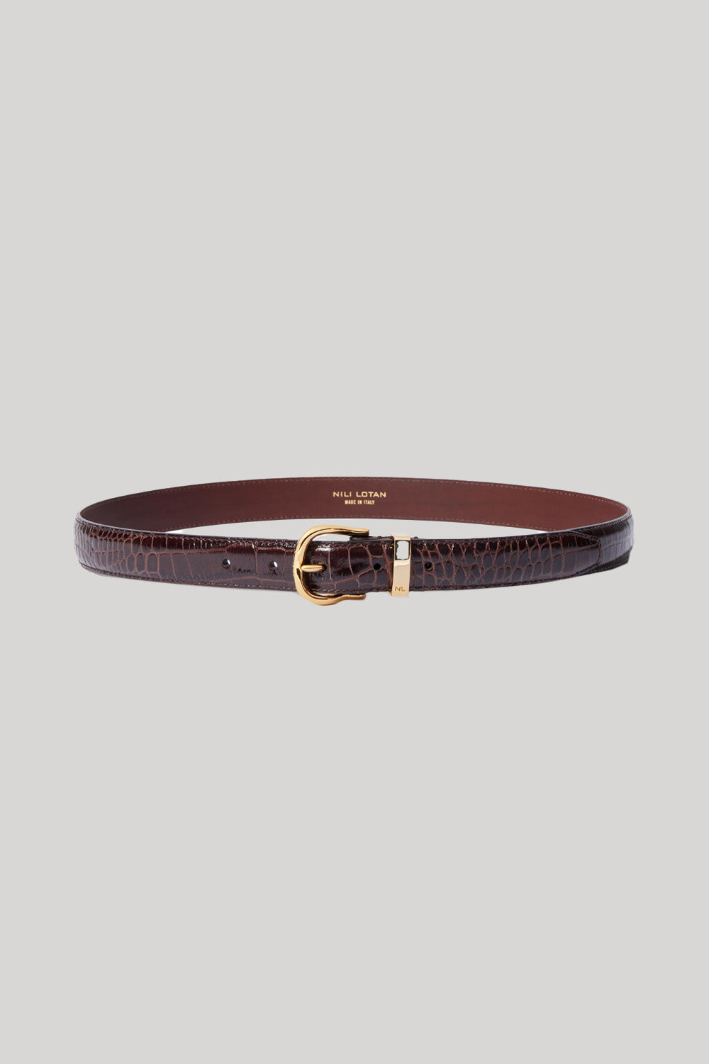 Designed with the modern women in mind. Pair with either your favorite pair of denim jeans or dress pants, the elevated ease and versatility of the Louise belt makes it the perfect accessory to pull together just about any look. Croc embossed calfskin, made in Italy.