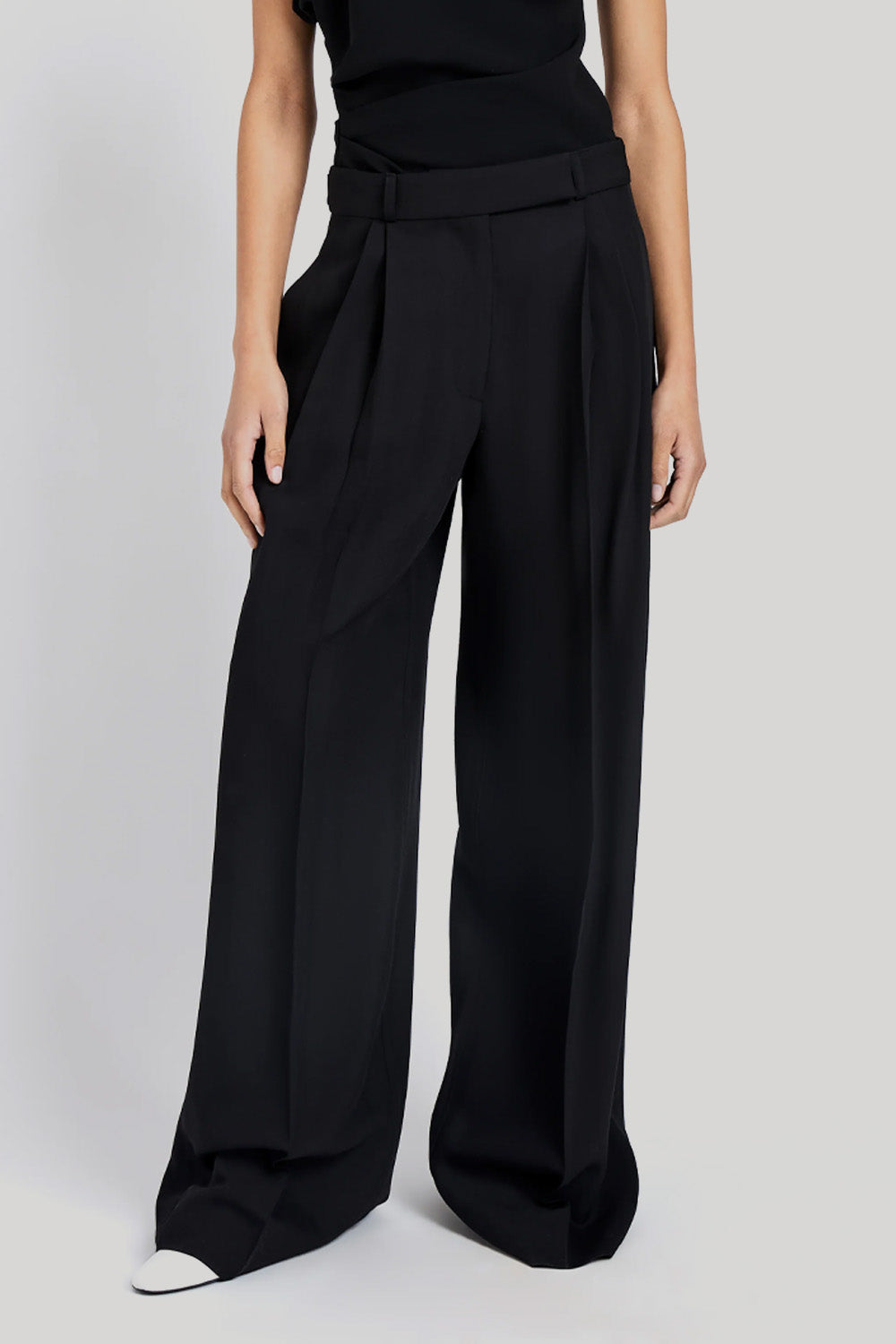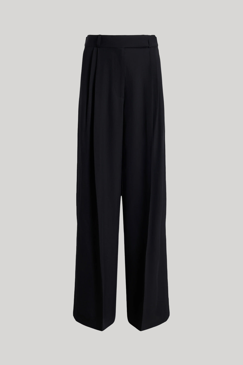 The Patricia Pant in Classic Twill features a tailored silhouette with a wide leg and side slip pockets.