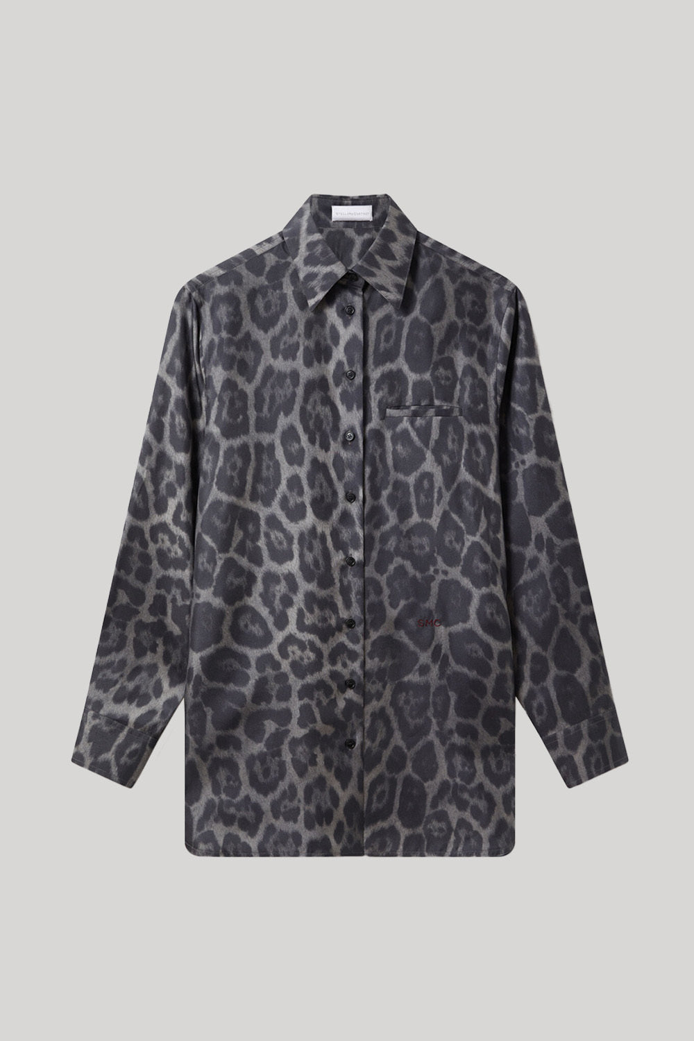 Oversized silhouette is topped with a classic collar and buttoned cuffs