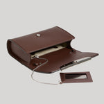Defined by a sleek, sculptural silhouette, the Louise Pochette is handcrafted in Italy from smooth espresso leather with a rich, polished finish. Custom palladium-plated hardware and a discreet magnetic closure refine the design, while interchangeable straps allow it to be styled as a shoulder bag, crossbody, or clutch. Inside, a removable mirror on a chain doubles as a card holder, a discreet detail that enhances its intentional design. Compact yet functional, it holds daily necessities with ease and shifts effortlessly from day to evening.