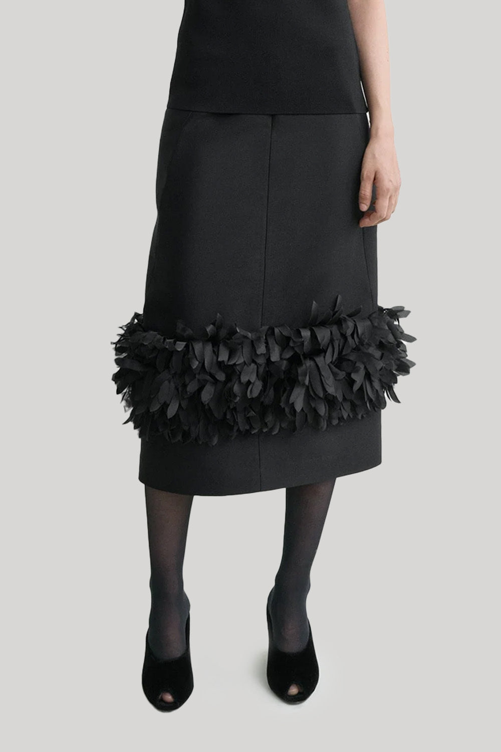 A standout piece from the Pre Spring collection, this occasion skirt is decorated with fine petals that mimic the gentle sway of feathers. It has a precisely darted construction made from a structured wool-silk blend and fastens with a concealed back zipper. Style it with a minimalist top and mules.
