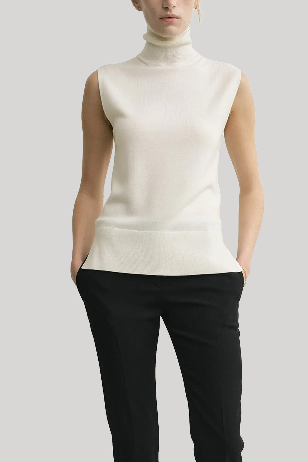 Designer’s note: "An effortless and elegant turtleneck to layer or wear alone. It's knitted from fine wool blended with a touch of silk, with side-hem slits that create a seamless drape."