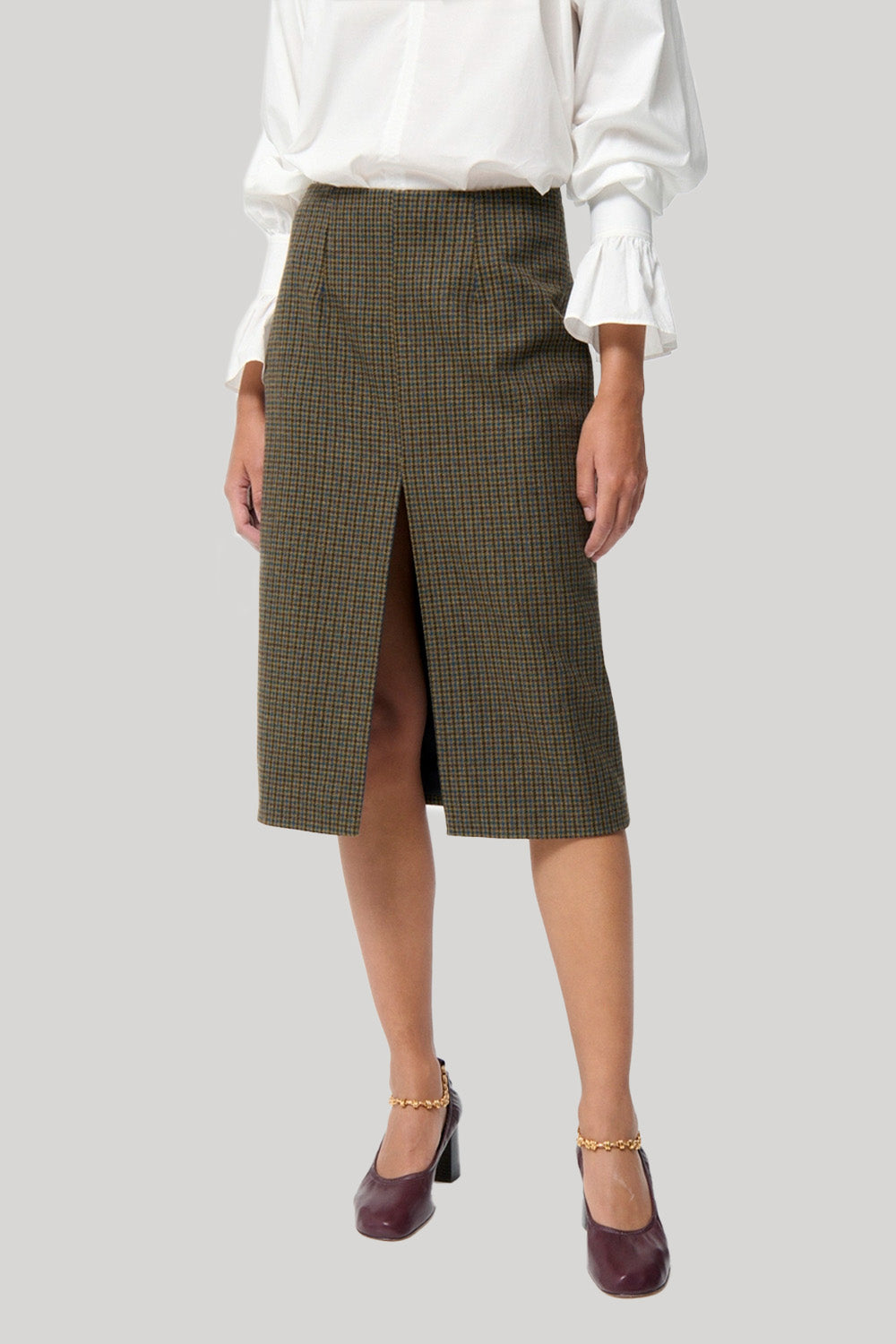The Felindra model revisits the straight skirt with character, dressing the silhouette with an assertive and feminine look.
