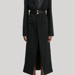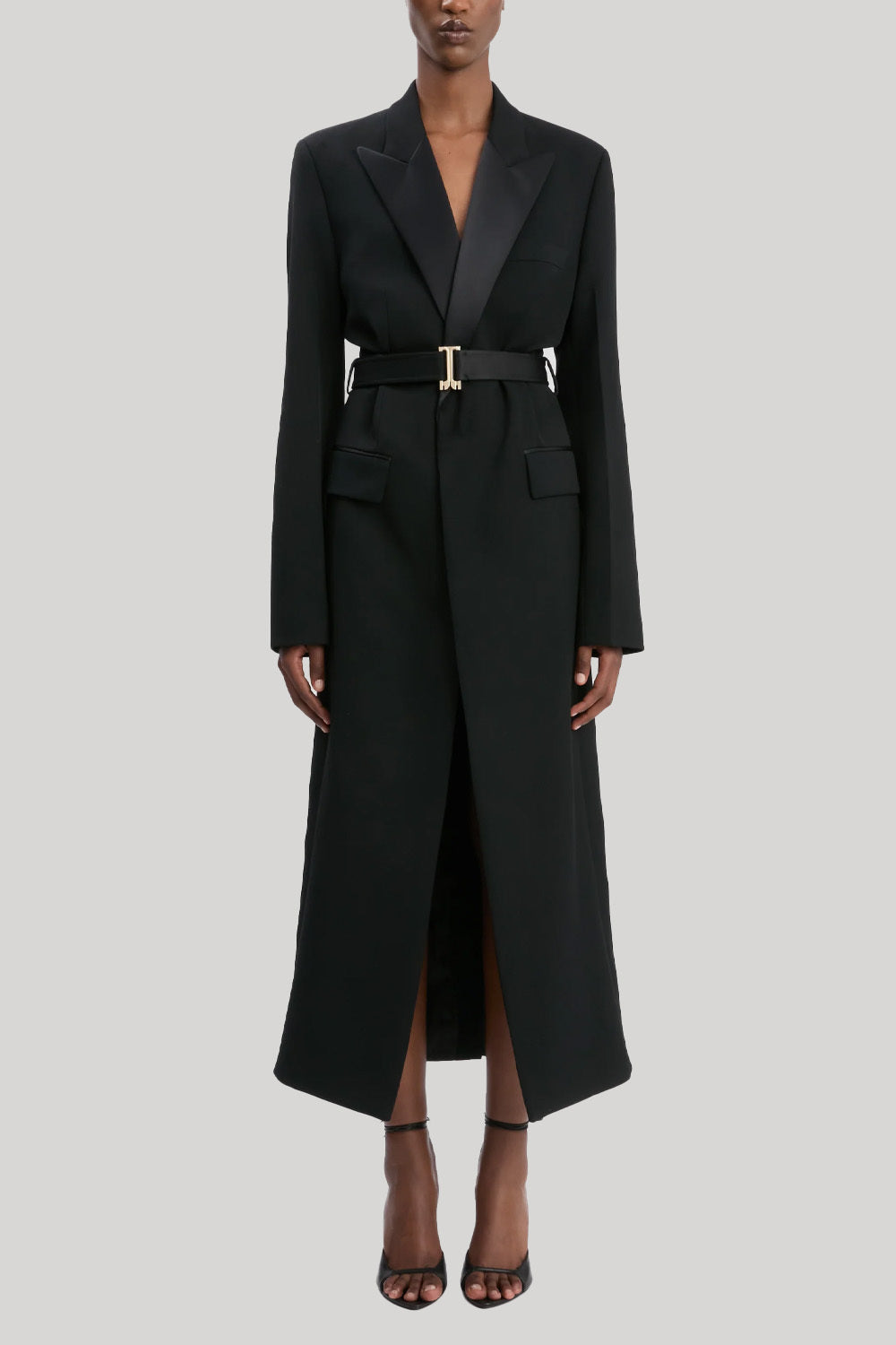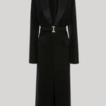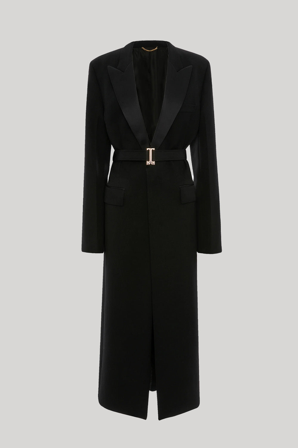 The grain de poudre fabrication and longline silhouette bring a sumptuousness to the Belted Tailored Coat. Elevated with contrasting satin lapels, waist belt and belt loops, it is a practical and polished piece of outerwear. A centre back vent and concealed front button closures complete the look.