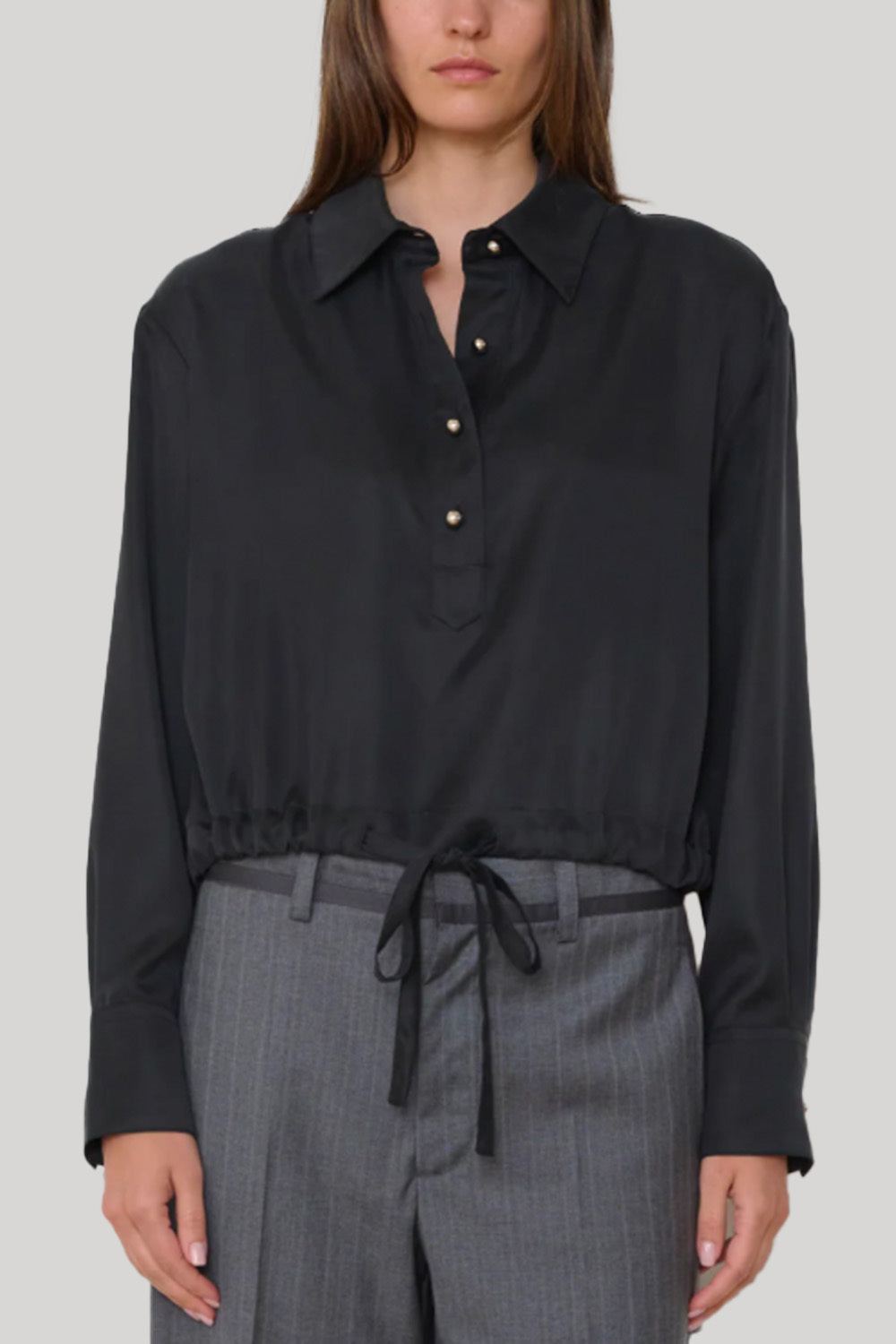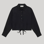 Effortlessly poised and unapologetically bold, the Crawford Blouse embodies a new kind of modern femininity. Crafted from luxurious silk or cupro, this piece redefines the classic shirt by blending polished tailoring with rebellious fluidity. Its cropped silhouette and clean placket with distinct Italian bold buttons add a touch of drama, while the functional drawstring at the hem allows you to transition the silhouette from relaxed to cinched.