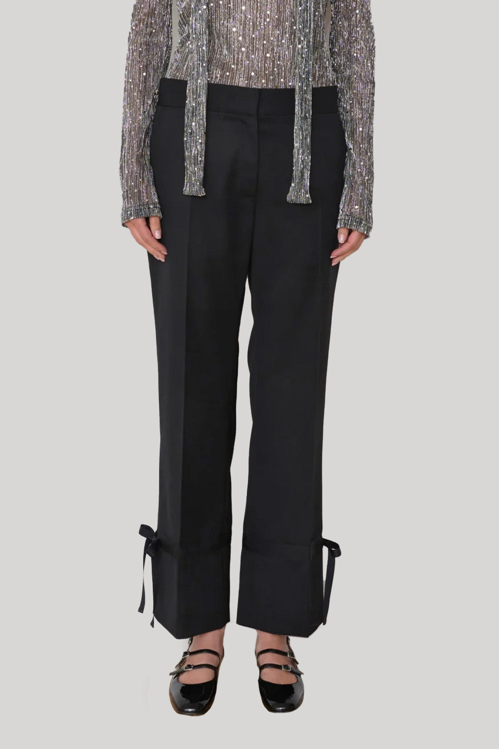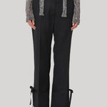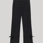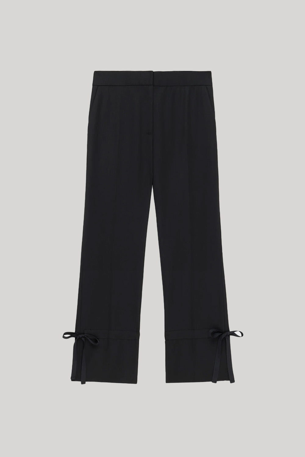 A study in polished rebellion. Our Cigarette Trouser is crafted from luxurious compact wools with a sleek, straight cropped leg that pays homage to timeless Audrey Hepburn style. The tailored fit is softened by a delicate satin ribbon at the hem—a touch of playful defiance for a life lived on your own terms.
